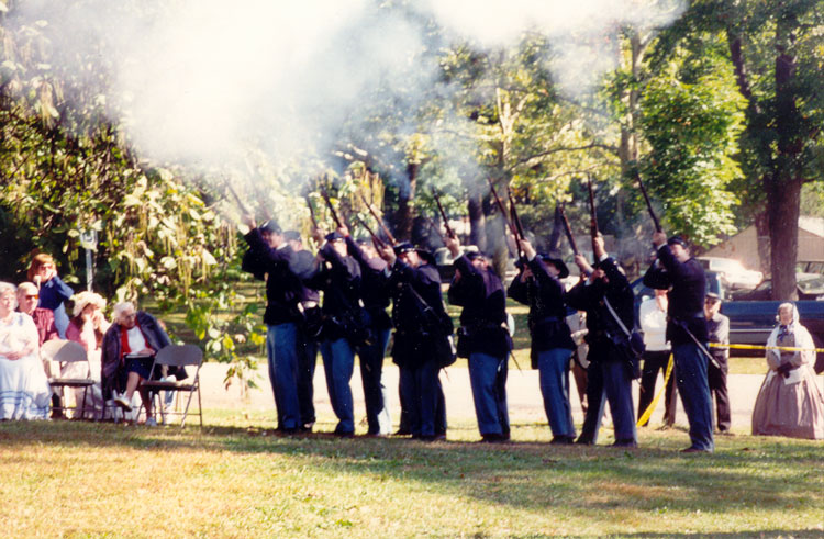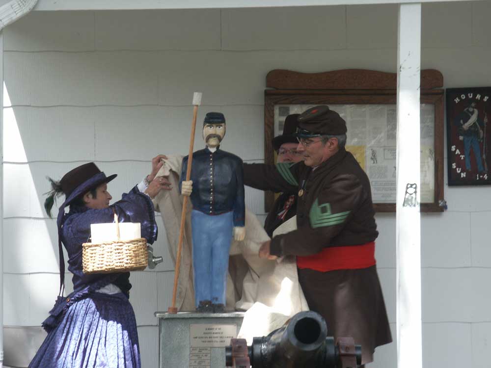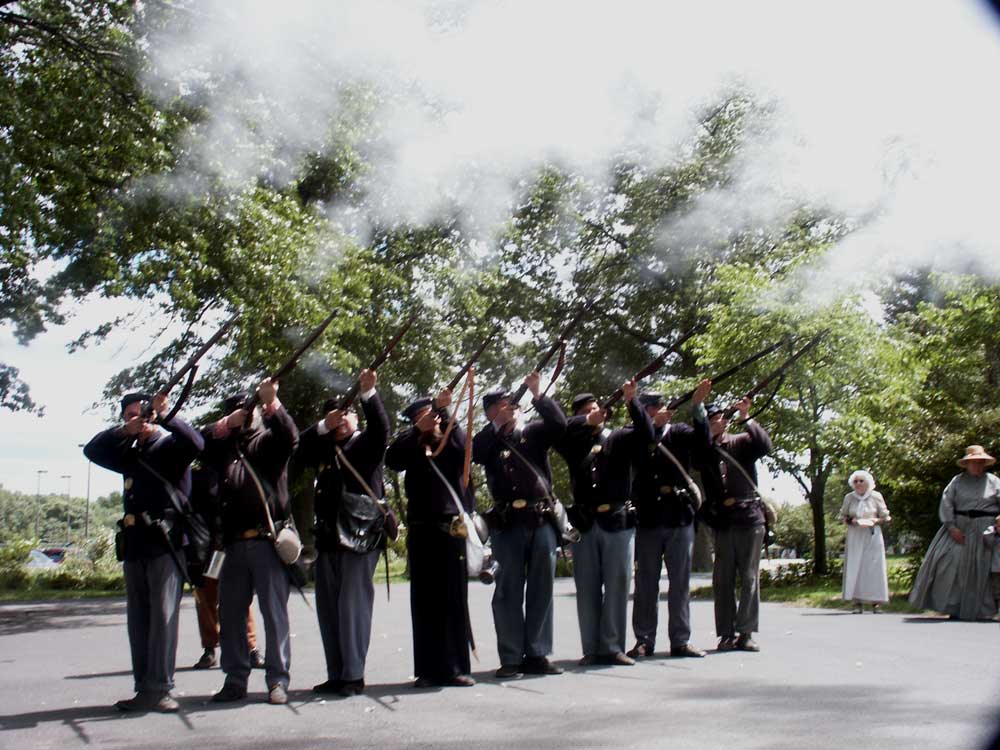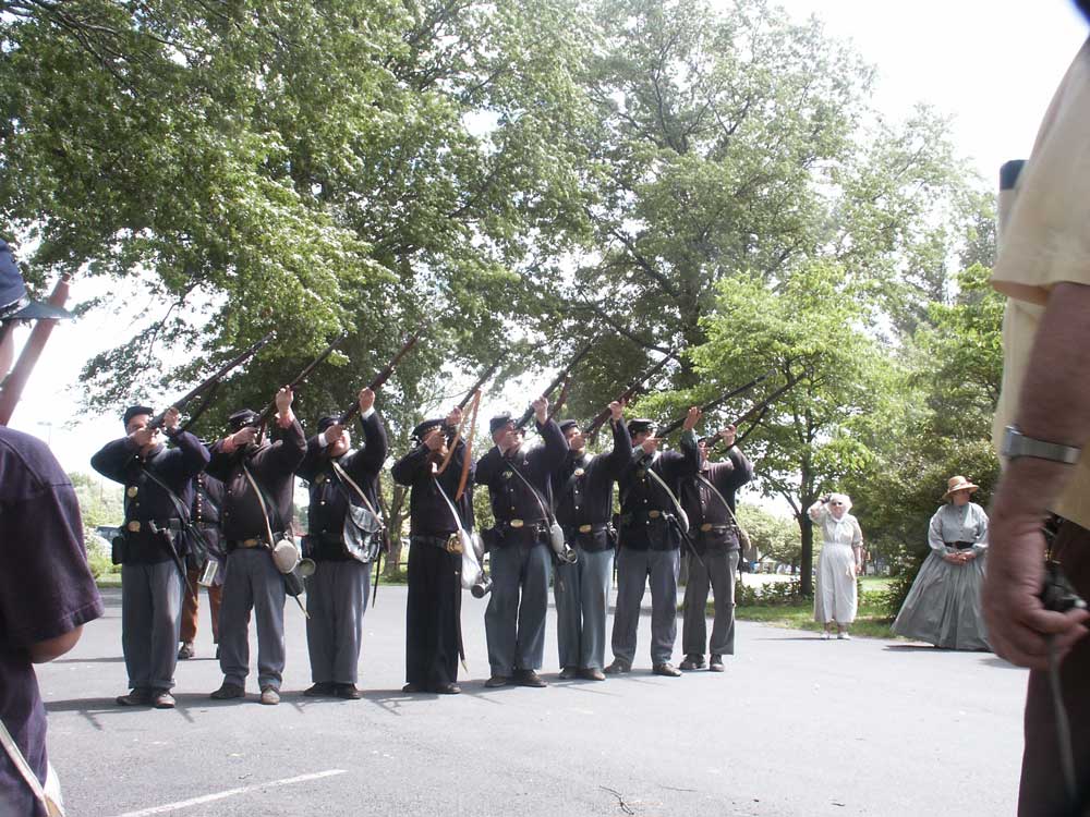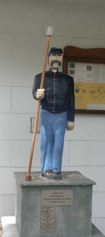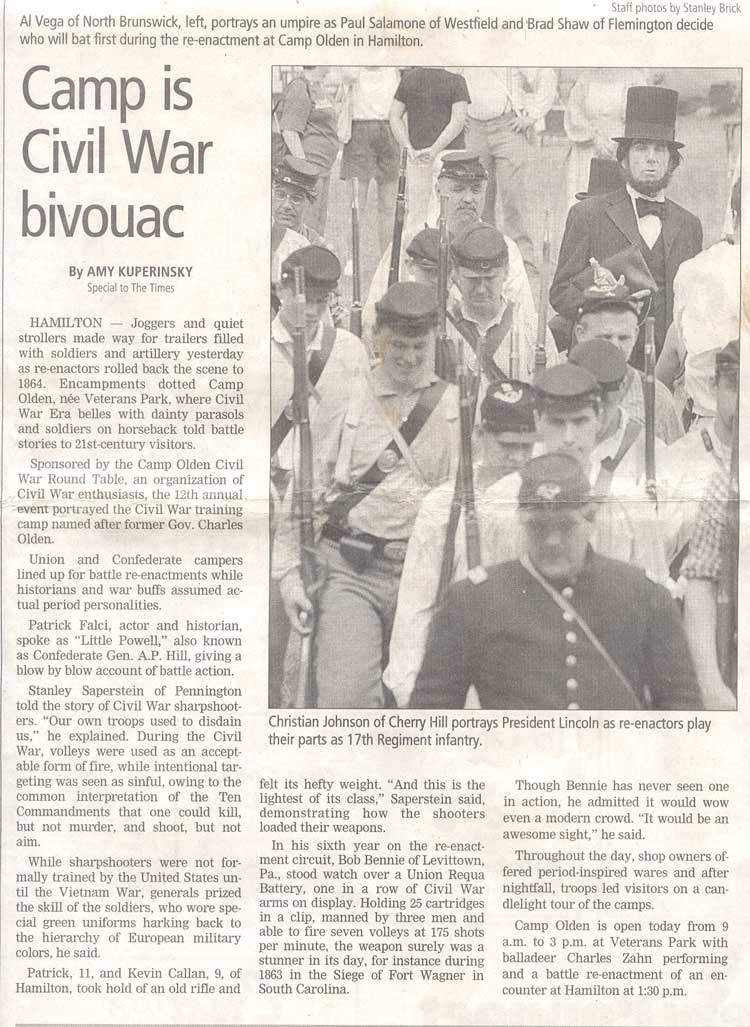"Camp Olden is Civil War Bivouac" by Amy Kuperinsky Trenton Times Article detailing some of Stanley's activity with Camp Olden, telling the story behind the reenactment. For more information about Camp Olden, check out their website: http://www.campolden.org "Their Spirits Still Linger" June 10th 2006 The Camp Olden Civil War Round Table and Museum conducted ceremonies coinciding with their 10th Anniversary of the museum and events for Jr. Camp Olden Members to dedicate two new monuments at their Hamilton, NJ Museum, a Cannon Monument donated by the Spirtosano family in the name of Vincent J. Spirtosanto who personally designed and crafted the piece. "The Artilleryman" is a hand crafted folk art statue by Stanley D. Saperstein of Artisans of the Valley, the statue was donated by Stanley and his wife Cynthia and holds a pose behind the canon. The moments serve as a reminder of the lost members of the Camp Olden and their dedication to the preservation of not only the history Hamilton Township's involvement in the Civil War, but of our nation's heritage. The Member's of Camp Olden would like to thank Mayer Glen D. Gilmore for his continued support and dedication to the preservation of local and national history. The photo collage by Eric M. Saperstein shows the dedication ceremony, a profile of "The Artilleryman" and the cannon, and features the Honor Guard firing a salute after the traditional bell ceremony to remember the lost members of the Camp Olden Civil War Round Table.