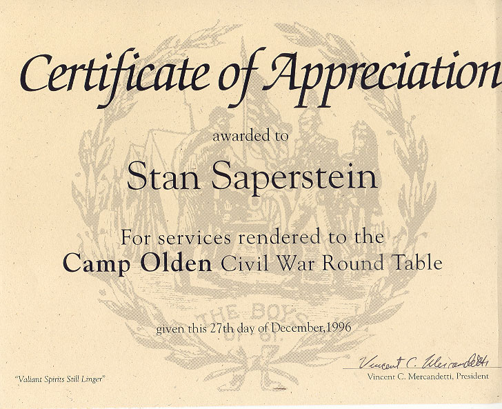 | Stanley pictured at the Swamp Angel dedication ceremony. |  Camp Olden Civil War Round Table & Museum, Inc. was founded in 1992 and is a non-profit educational organization welcoming members of all ages brought together by our common interest in the American Civil War chartered to "foster and support a better understanding of the Civil War era."