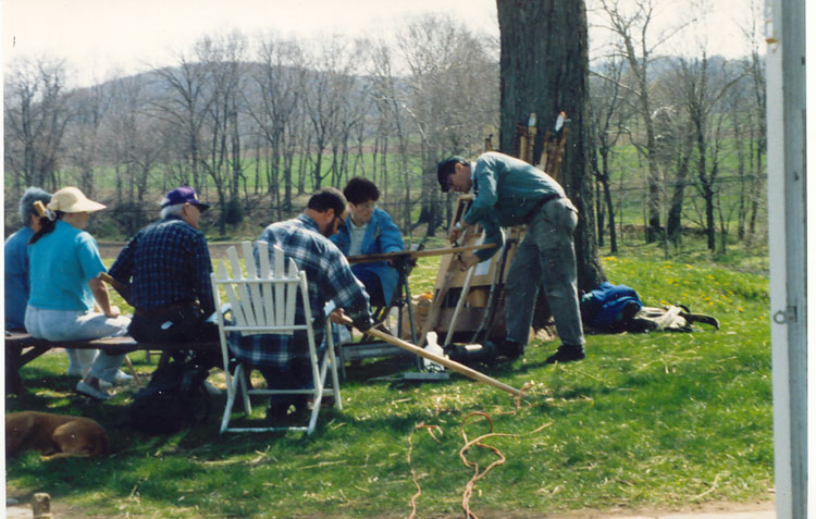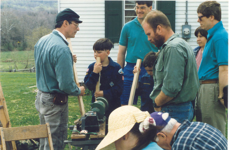 | Stanley, on far left,leads walking stick carving class at Howell Farm