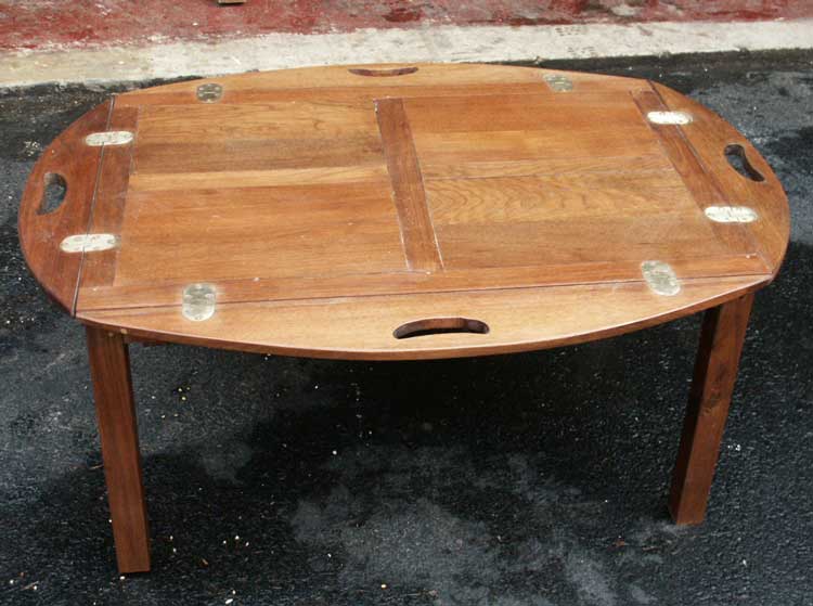 These are not so common anymore, but used to be a mainstay of many households. The butler's table is just that - a table that allows a servant to bring a complete setting from the kitchen to the living room and retire it when appropriate. Available in all common hardwoods in custom measurements.