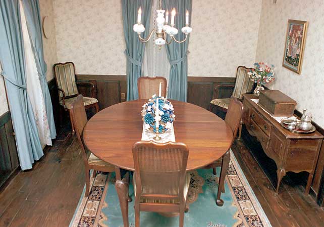 The original of this drop-leaf table is in the Governor's Palace at Williamsburg, Virginia. The table is perfect for small rooms; its leaves fold down, leaving a 54"x24" table. Open, the oval top is 70"x54".
