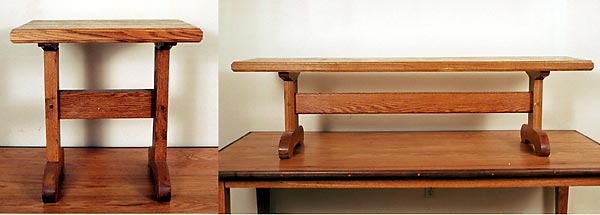 End tables and coffee tables are also available as trestle designs. These 8/4" oak tables are robust to say the least. Oversize mortis and tenon joint work ensures longevity and strength.