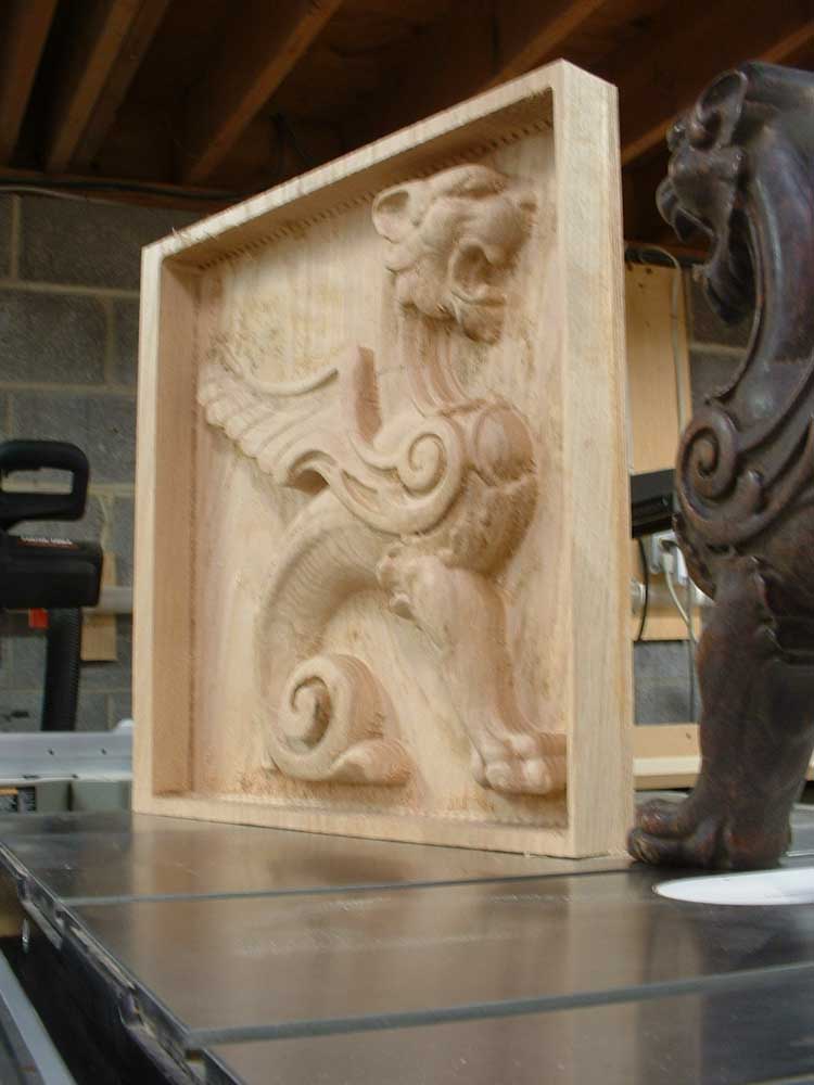 See the Griffin take life, first in foam for test runs, then in solid oak. Almost any existing carving or model can be scanned, scaled, and cut in wood, foam, or composite materials.